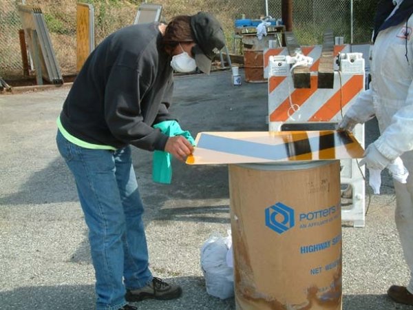 Cleaning sign face with 100% denatured alcohol to remove bond breakers.
