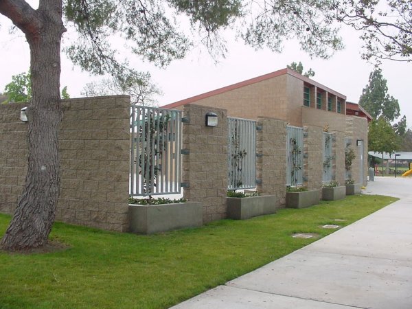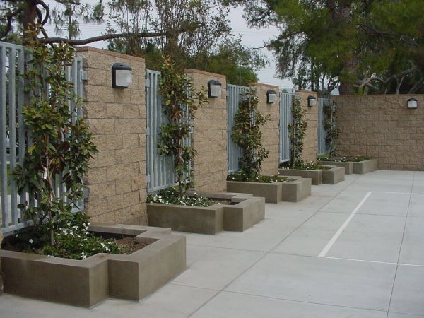 14.) Exterior front side of courtyard planter wall.