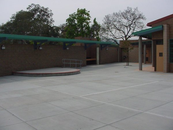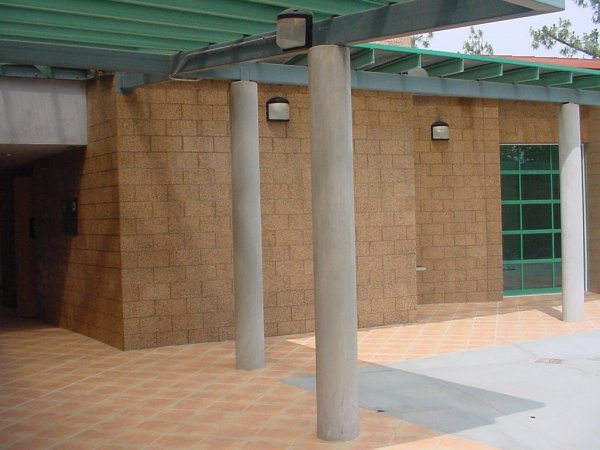 11.) CTF-coated smooth-face and split-face back wall of courtyard.